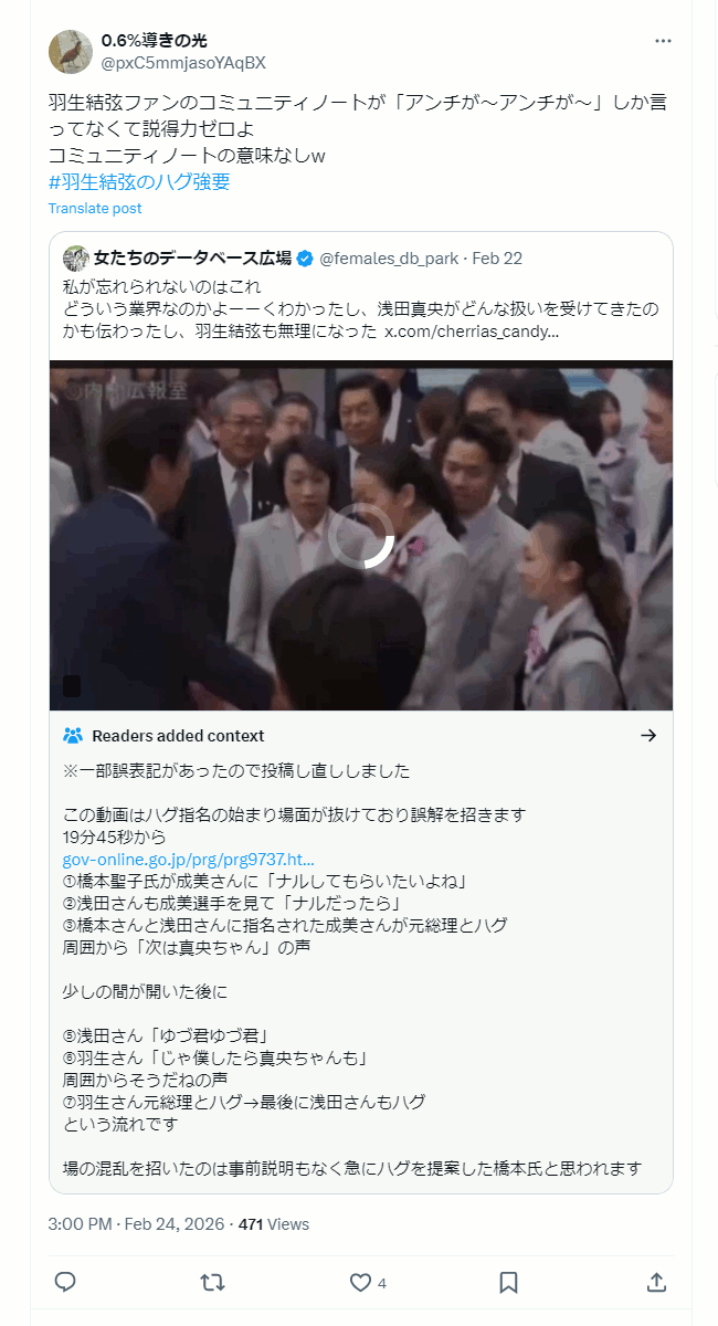 羽生結弦ファンのコミュニティノートが「アンチが〜アンチが〜」しか言ってなくて説得力ゼロよ