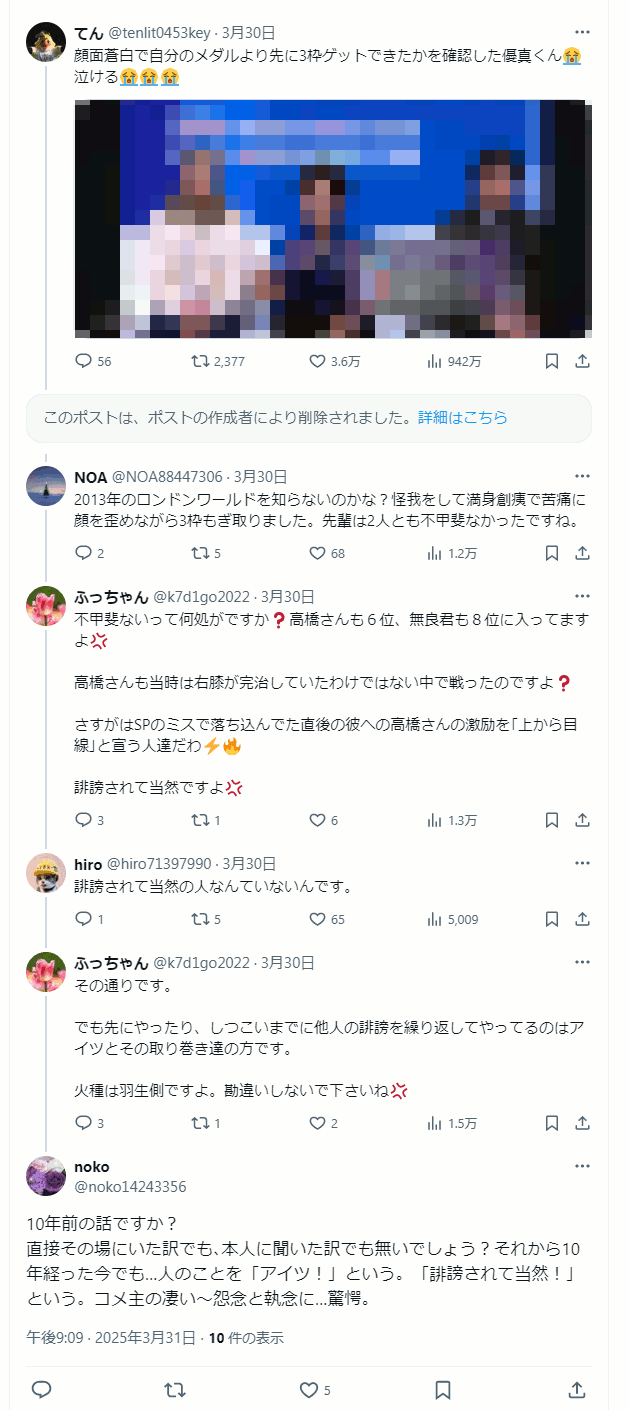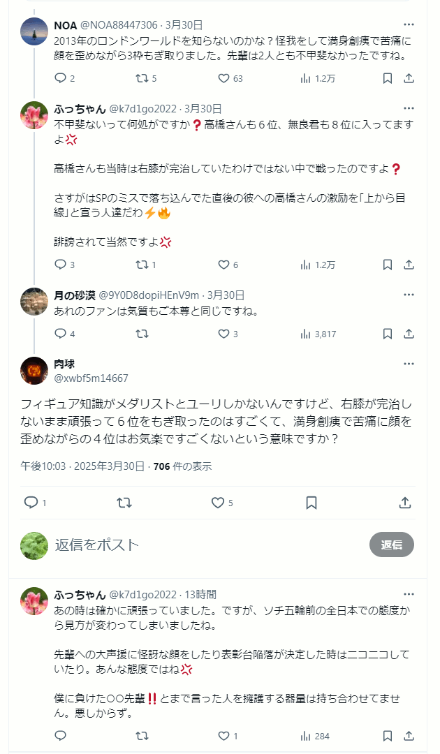 さすがはSPのミスで落ち込んでた直後の彼への高橋さんの激励を「上から目線」と宣う人達だわ🕳