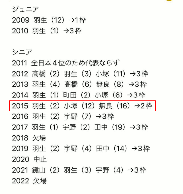 2013年のロンドンワールドを知らないのかな?怪我をして満身創痍で苦痛に顔を歪めながら3枠もぎ取りました。先輩は2人とも不甲斐なかったですね。